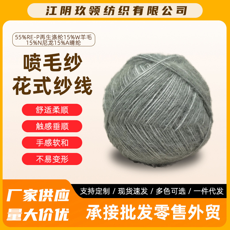 55%RE-P リサイクルポリエステル 15%W ウール 15%N ナイロン 15%A アクリルスプレー糸手作り DIY