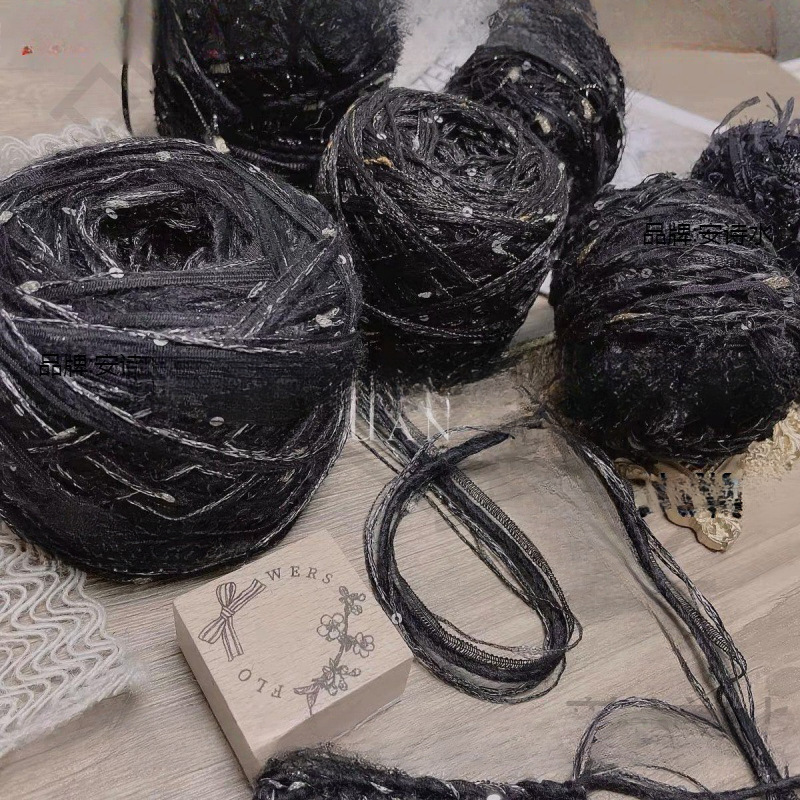 青と白の織り館ブラックゴールドハンドミックスライン小さな香りの素材ウール DIY 手作りスカーフセーター糸