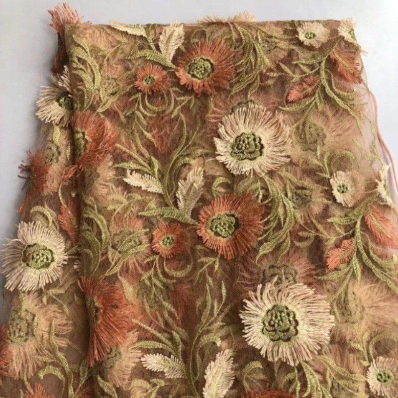 新しいホットスタイル 3D 立体フローティングフラワーメッシュレース生地婦人服ドレスパフォーマンス服刺繍生地