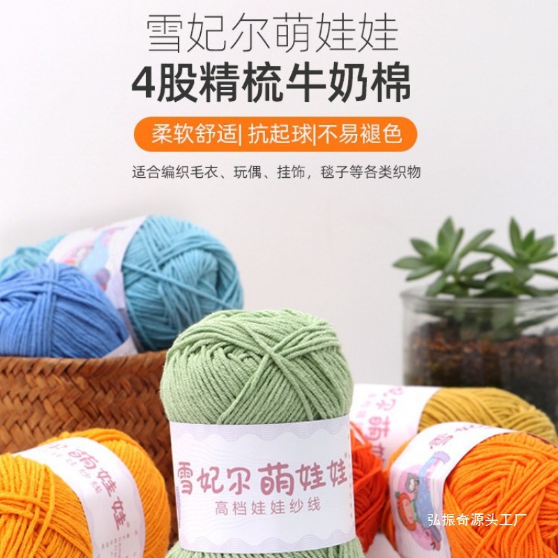 雪妃尔萌娃娃毛线股四股牛奶棉手工勾毯子钩针编织花束材料包