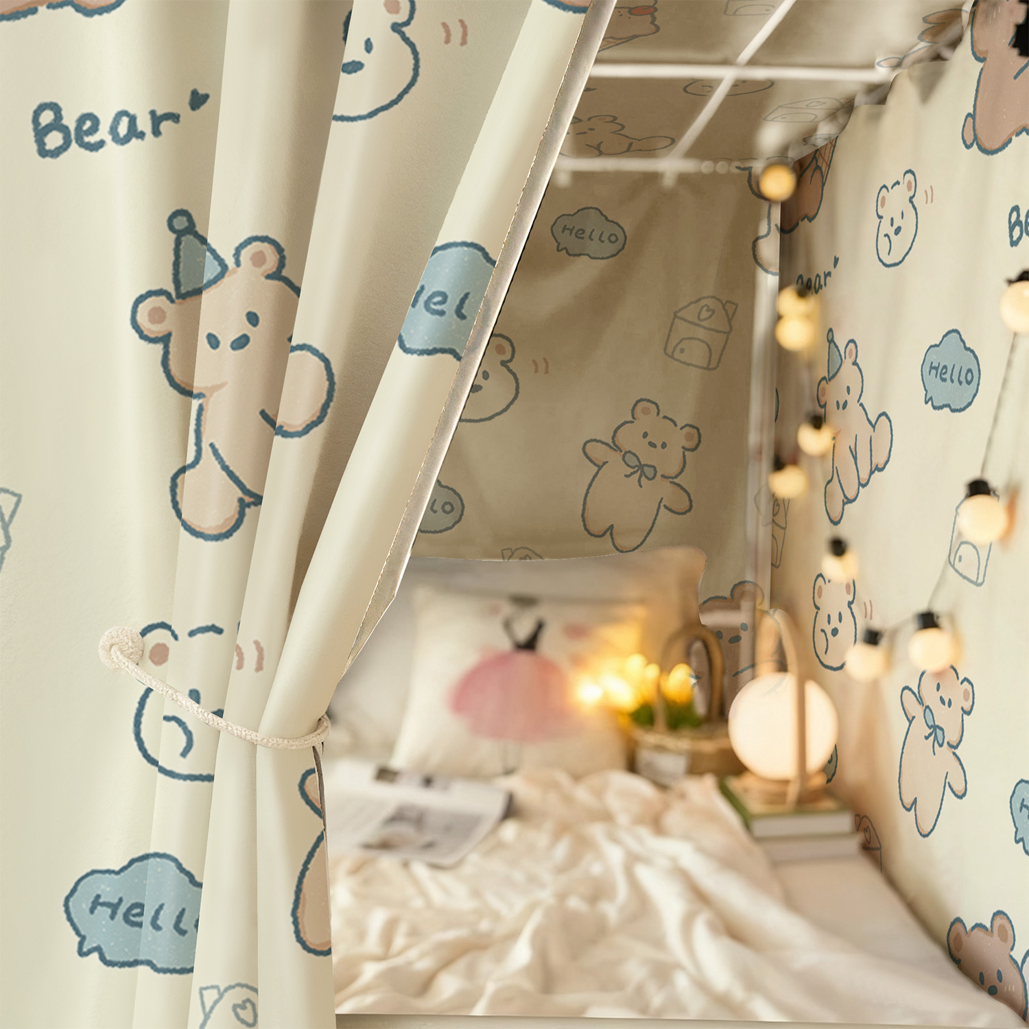 超強力遮光ベッドカーテン寮の上に厚い全遮光下にカーテンを敷いています。