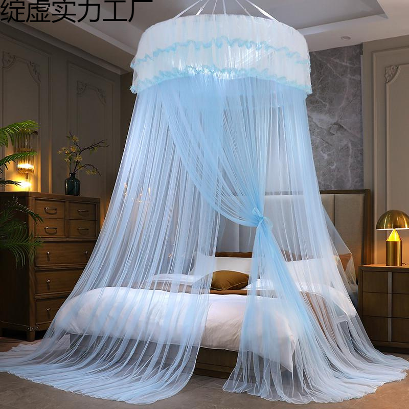自宅の寝室用の丸い吊り下げ蚊帳。ベッドプリンセススタイルの天井ドーム。ベッド蚊帳蚊帳