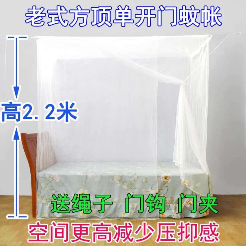 暗号化された防蚊昔ながらの家庭用蚊帳寝室ダブルベッド伝統的なスクエアトップテントシングルドア白蚊帳結束ロープ付き