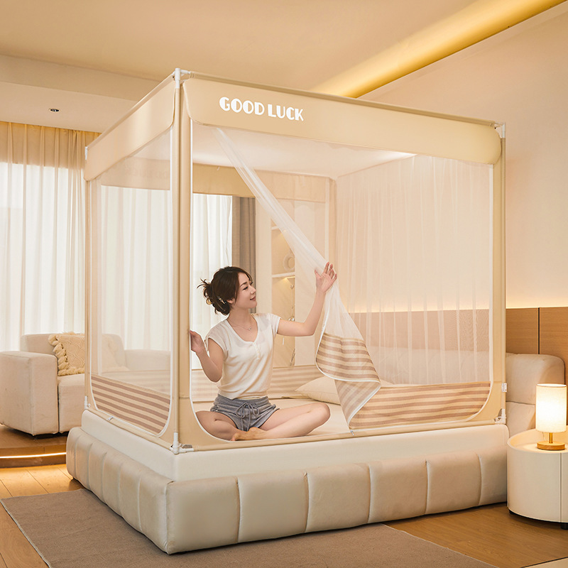 四季防打蚊帳2023新型家庭用寝室の3つのドアは、子供の厚いスタンドの全底蚊帳を設置しないでください
