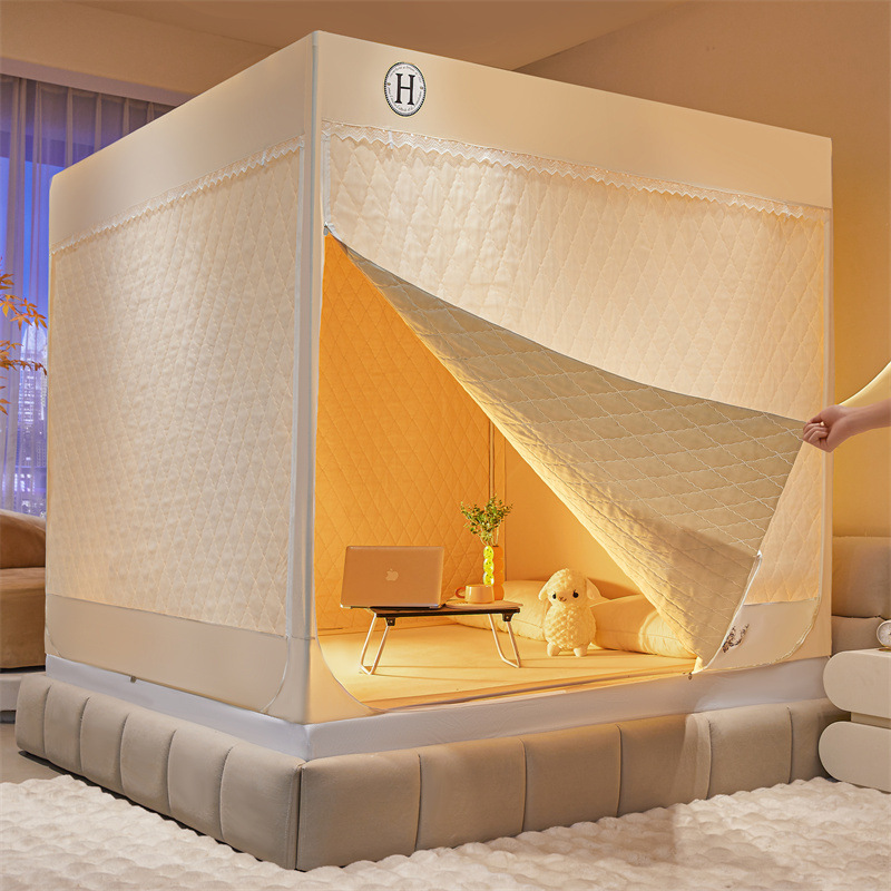 四季通用遮光全包囲保温防風厚手蚊帳北方防寒保温プライバシーベッドカーテン蚊帳