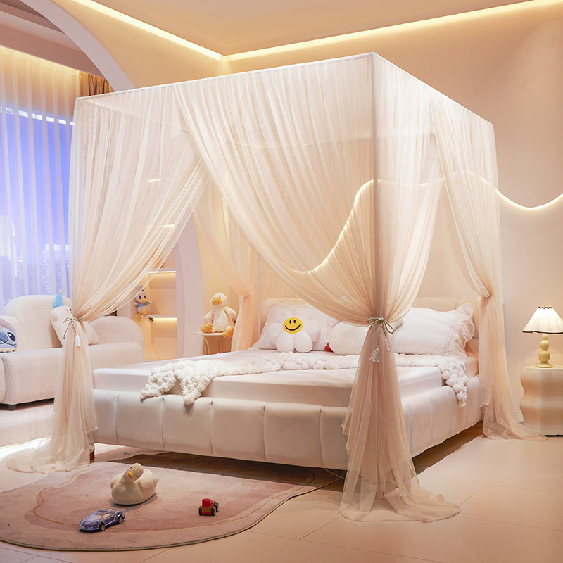新型の暗号帳の紗宮廷の蚊帳の着地の支柱は太くて厚い高級な家庭の寝室の3オープンの蚊帳をプラスします。