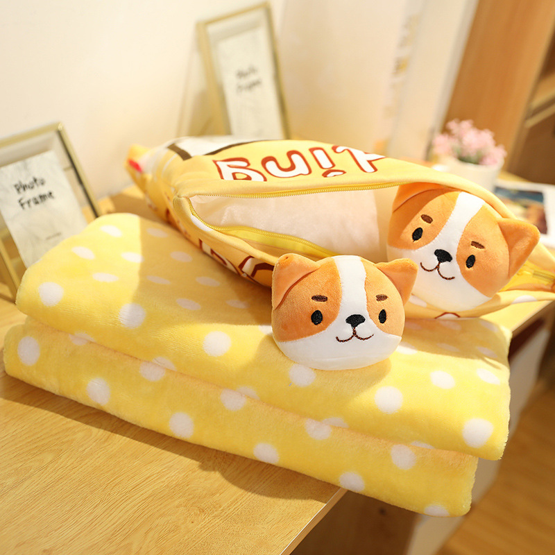 お昼休みブランケットかわいいプレゼント漫画黄色の犬青い猫スナック抱き枕ホーム装飾収納卸売エアコンブランケット