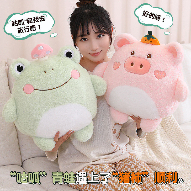 漫画風動物の子犬と子豚の抱き枕、ハンドウォーマー、3in1抱き枕毛布、エアコン掛け布団、多機能ポータブル毛布バッグ