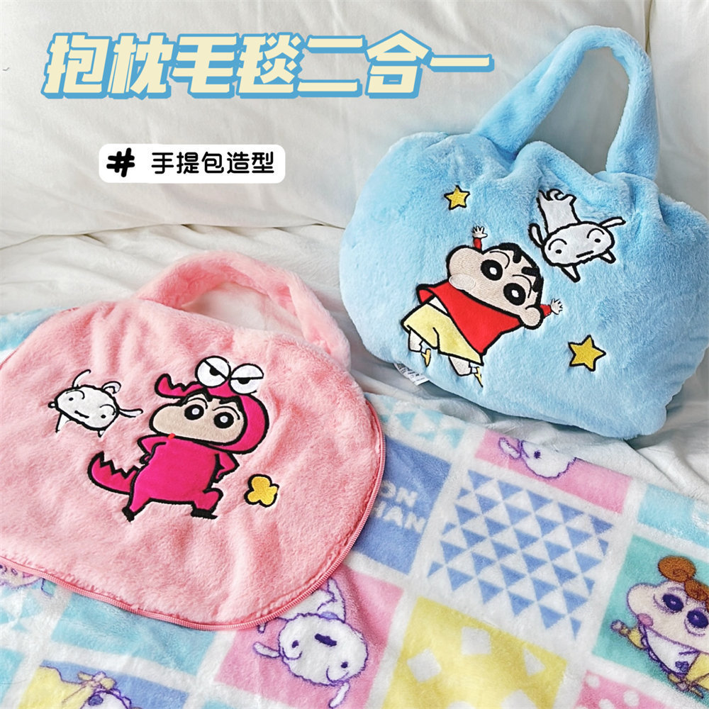 クレヨンしんちゃん正規版ハンドバッグ抱き枕毛布二合一携帯オフィス昼寝枕冬毛布新作