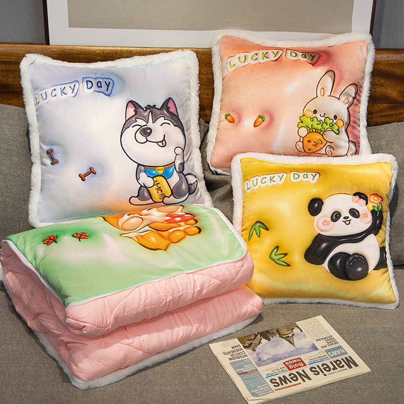 創意プリント抱き枕ソファークッションぬいぐるみクッション女子プレゼント両用抱き枕エアコン毛布