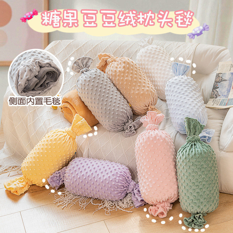 小清新キャンディー抱枕毛布二合一3d豆絨毯純色オフィス学生昼寝枕クッション