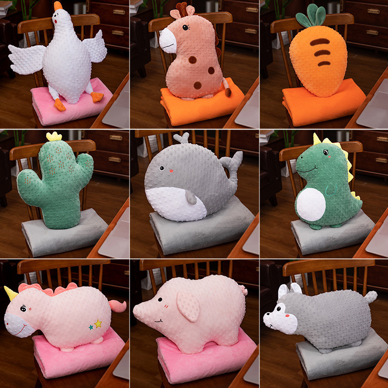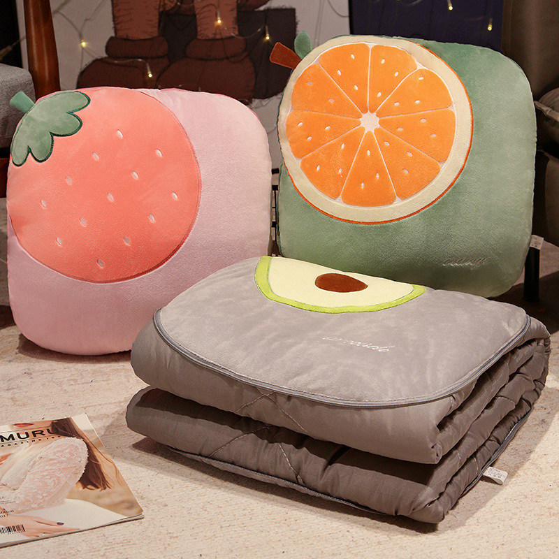 果物動物抱き枕毛布三合一オフィス昼寝毛布抱き枕布団両用車載枕エアコン毛布