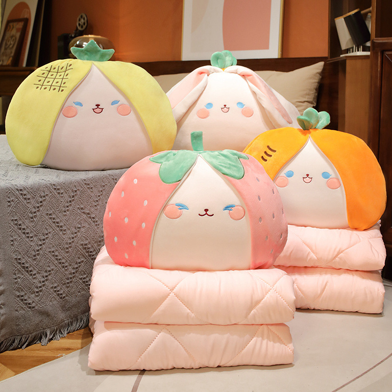 変身果物兎抱枕布団両用オフィス昼寝枕車載毛布二合一自動車枕車用