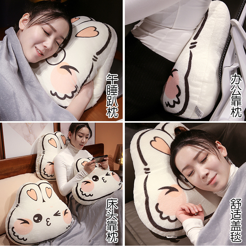 動物抱き枕毛布二合一ウサギかわいいオフィス枕昼寝枕車載冬布団両用