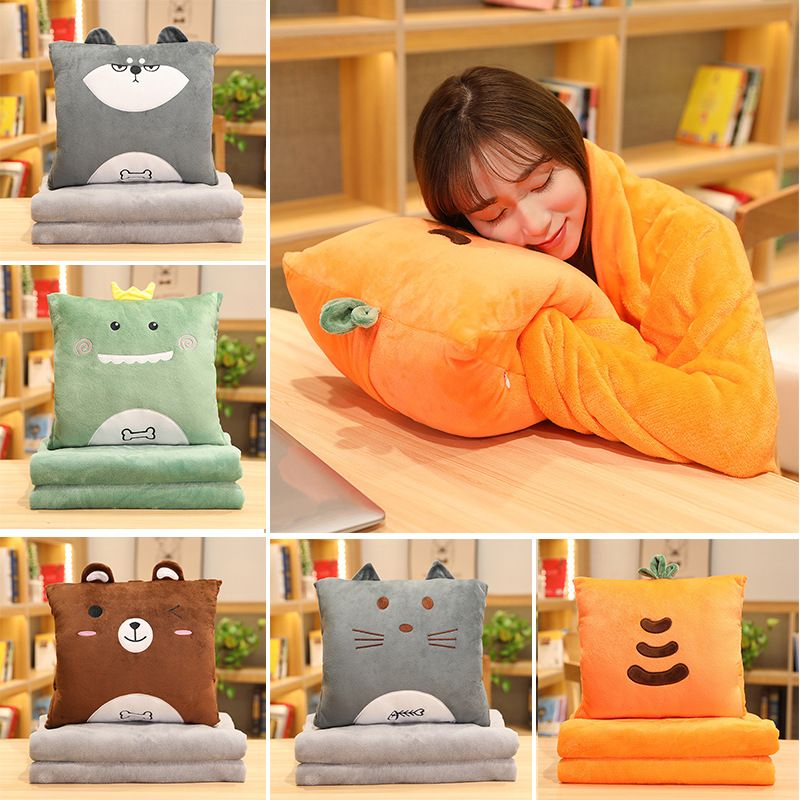 漫画抱き枕布団両用三合一抱き枕暖かい手昼休み折りたたみ枕オフィス昼寝エアコン毛布