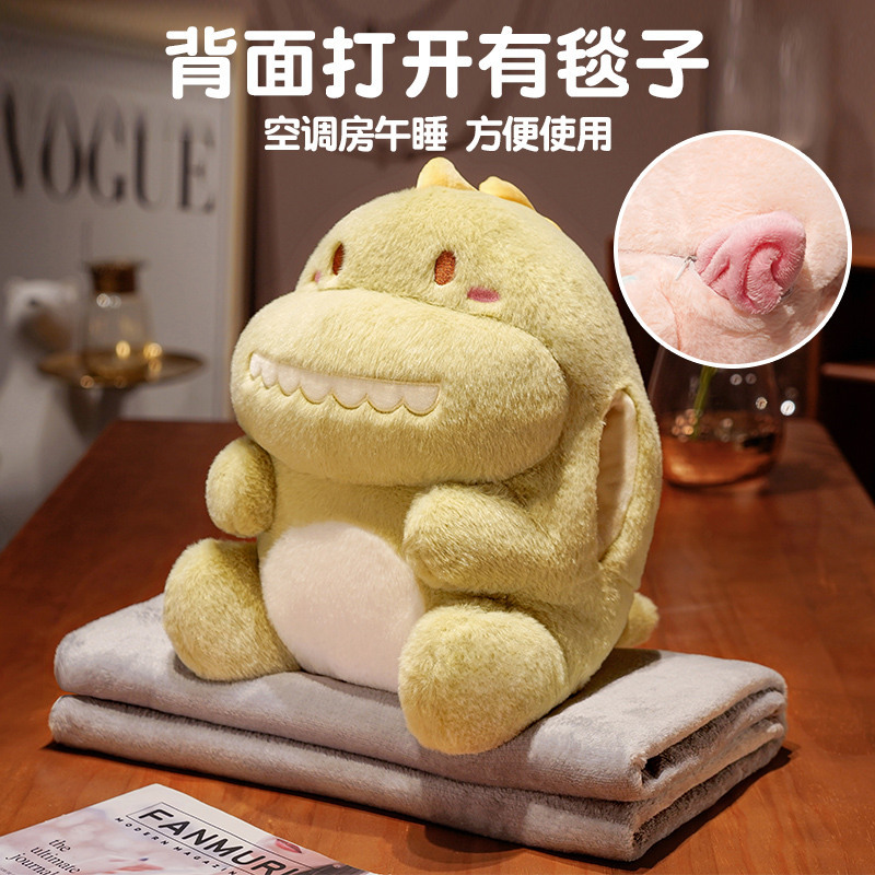呆萌大牙恐竜暖手抱枕脚恐竜公仔昼寝枕三合一抱枕毛布抱枕布団