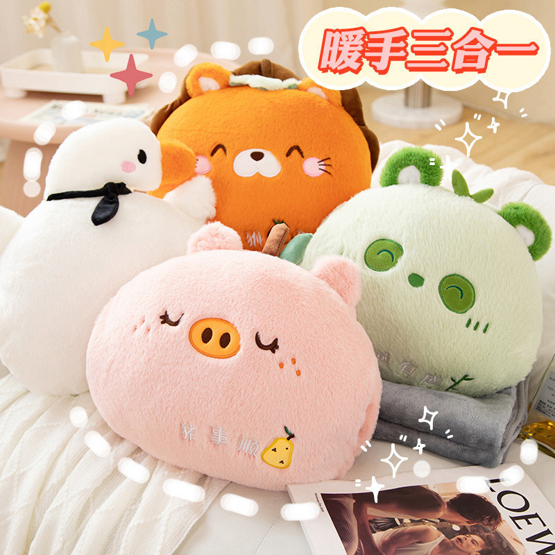 アニメ動物三合一暖手抱枕布団に手を入れることができます。