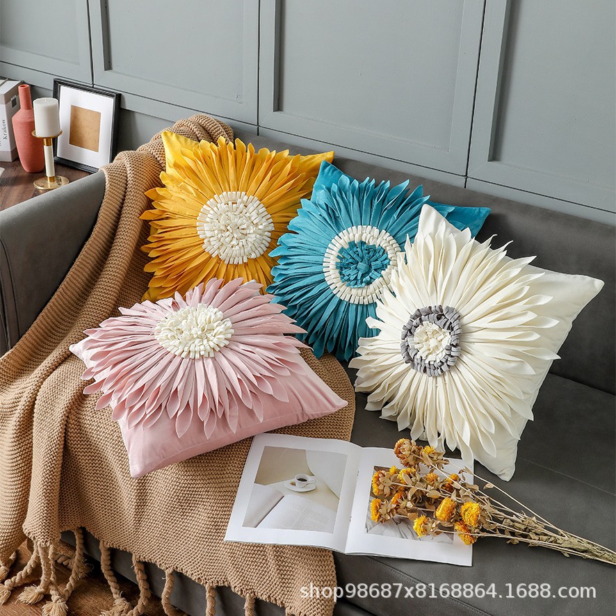 北欧ins手作り太阳ネット赤花抱き枕カバーラウンドクッションリビングひまわりソファハイエンド装饰