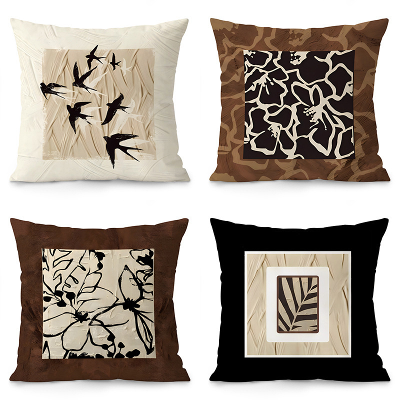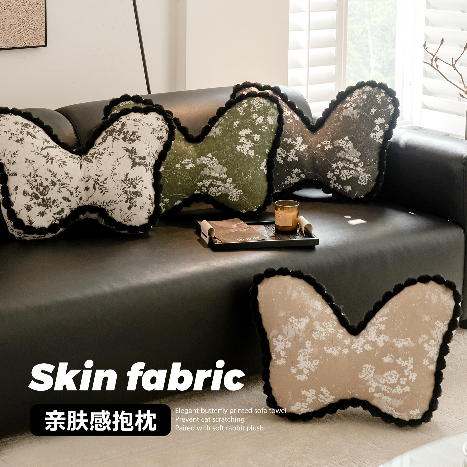 フレンチレトロ蝶柄枕 リビングソファクッション 寝室ベッドサイドクッション 綿麻高級感クッション