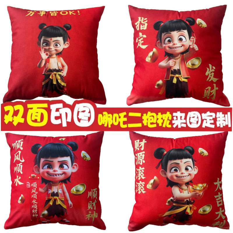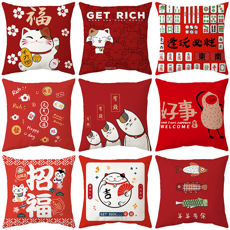 2024新年旧正月枕クッション招財赤おめでたいプリント抱き枕招財猫新年おめでたい客間