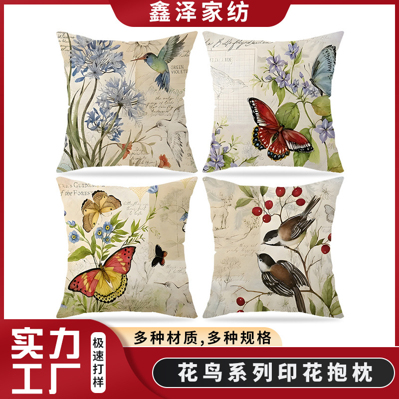 クロスボーダー春新作花小鸟抱き枕temu花鸟シリーズプリント抱き枕カバーリネンクッションカバーリビング