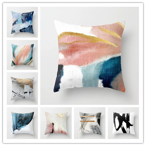 新しい热い贩売ポリエステル繊维抽象的な油絵パターン北欧枕クッションカバーソファクッション装饰なし枕コア