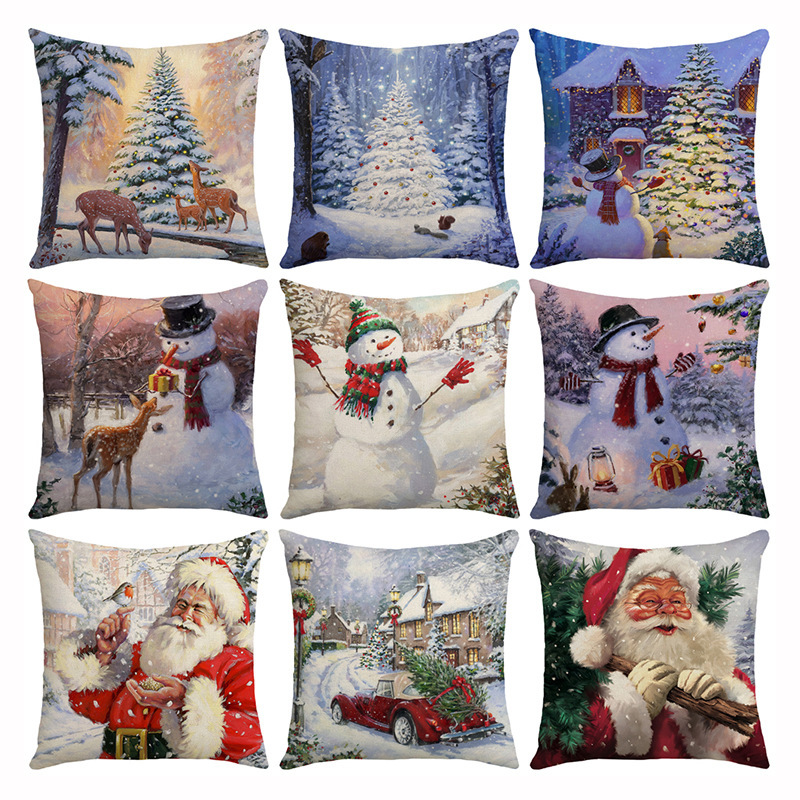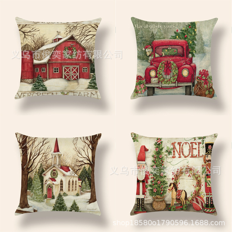 国境を越えた新しいクリスマス亜麻抱き枕カバー祝日クッション座布団ソファーカバー装飾