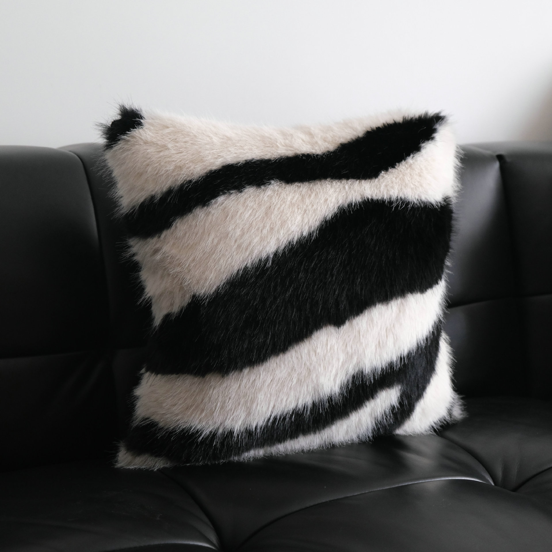 Ins風はミンクの毛をまねて枕カバーのぬいぐるみのソファーの白黒の枕カバーのシンプルなストライプの客間をまねてクッションカバーを展示します。