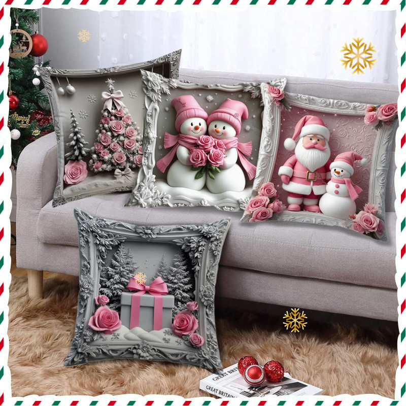 新しいピンクのクリスマス枕カバー雰囲気装飾プリントリネンホームソファ寝室腰枕クッション枕
