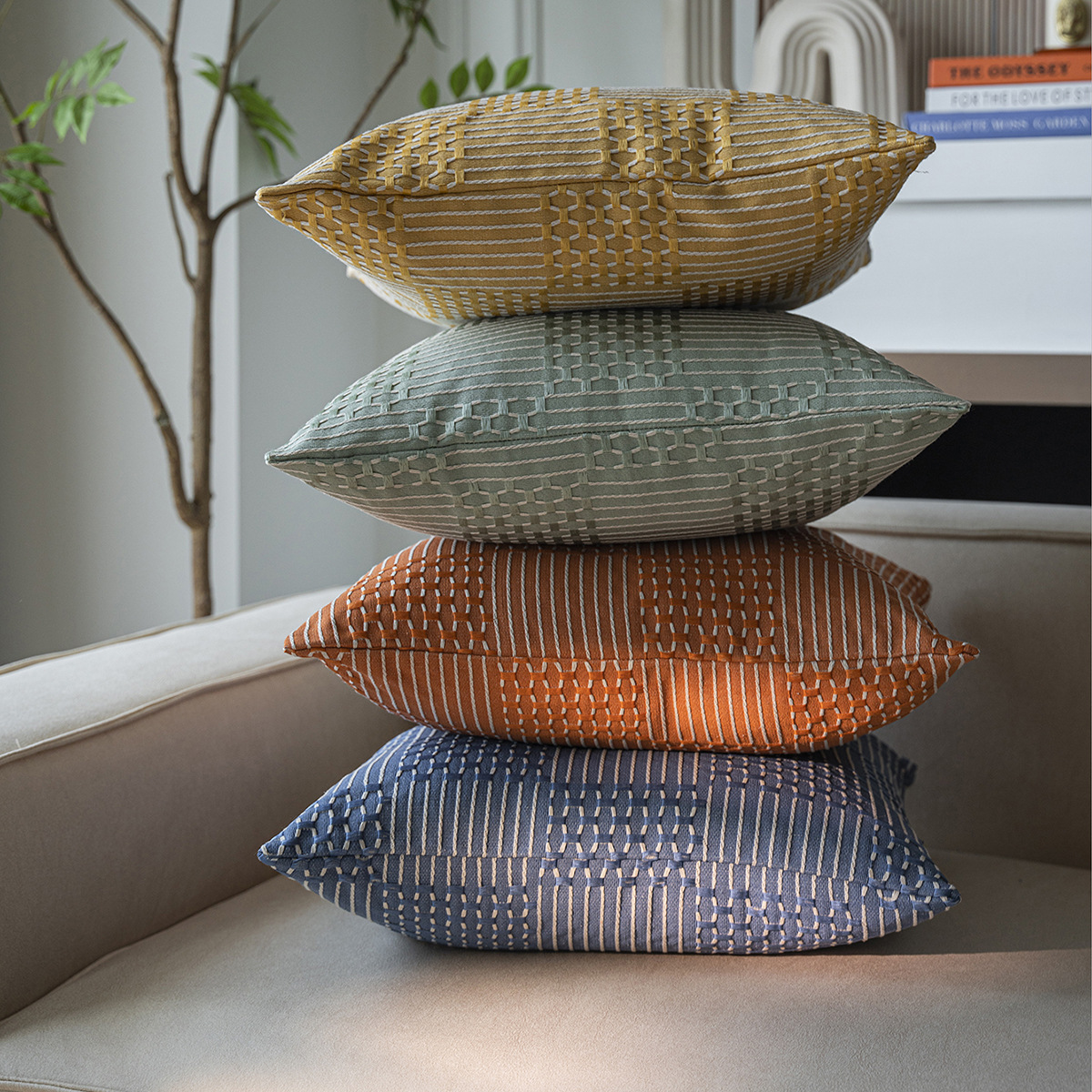 2025年の新型旭愛ポリエステル綿の縞模様の色織りジャカードは枕を抱いて枕に寄りかかってクッションカバーを代行しなければならない