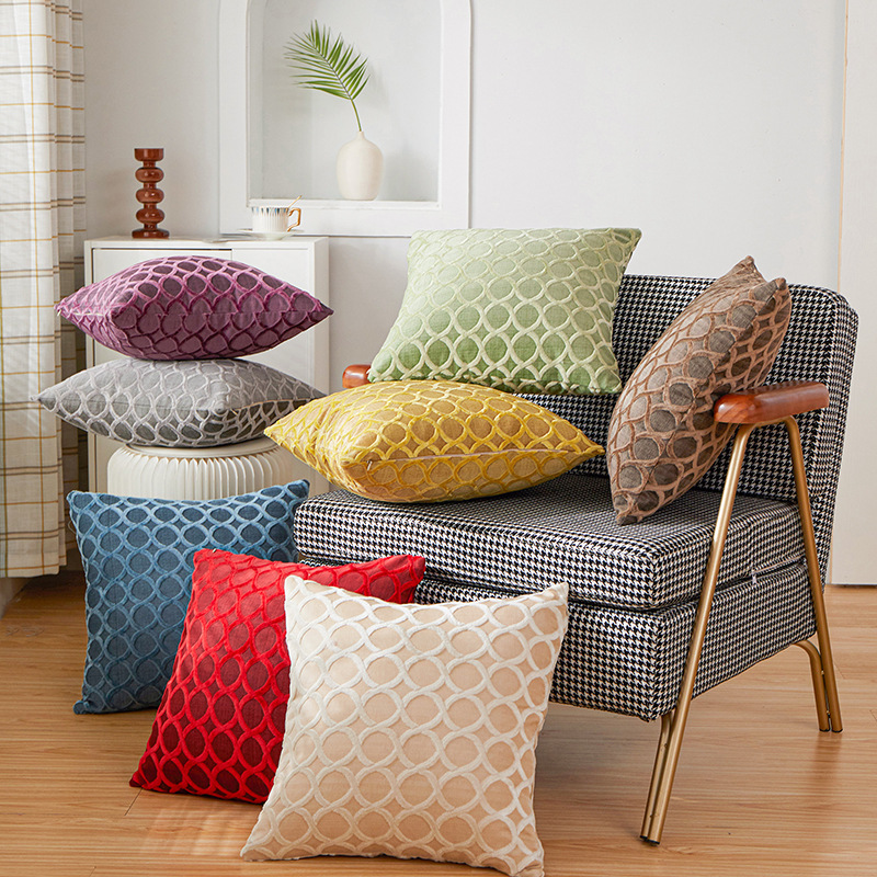 ベルベットカットのシンプルな幾何学的な抱き枕カバー家庭用ソファベッドのクッションソファーマットアマゾン生放送代発枕