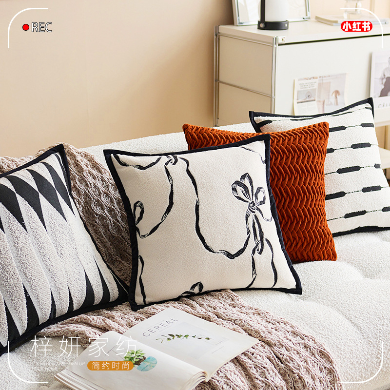 現代のシンプルで清新な抱き枕の白黒のアメリカ式ソファーのクッションの背もたれの軽い贅沢な枕のベッドの頭の抱き枕カバーの卸売り