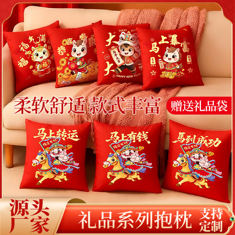 2026年馬年開運枕掛け布団2in1両用枕大紅色お祝い枕腰枕ロゴ印刷入り