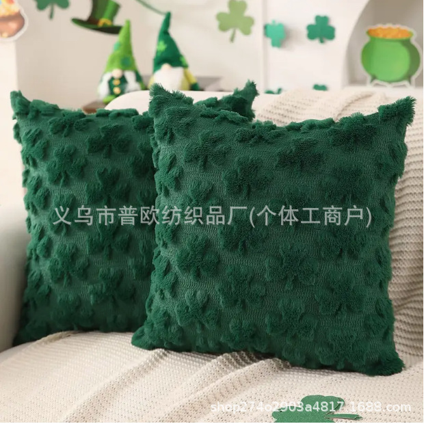 国境を越えて起爆したグリーン奇亜麻抱枕カバー祝日ソファオフィスクッション枕カバー緑毛怪クリスマス枕カバー