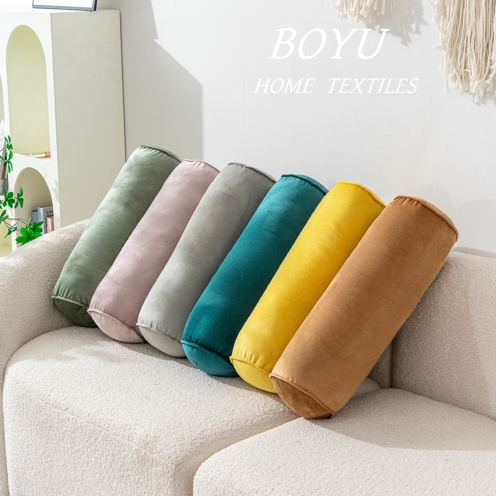 25新型ビロード円柱抱き枕豊満ソファー腰枕頚椎円柱枕取り外し可能枕芯