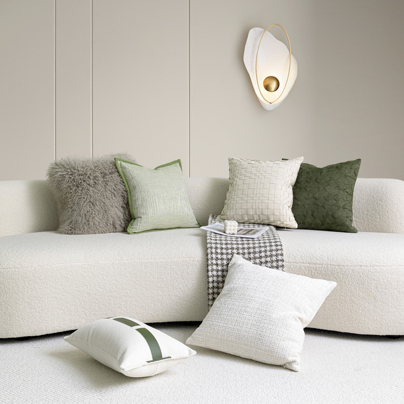 ミントミルキー北欧insクリーム风ビーチウール革编み高级感リビングソファ抱き枕クッション