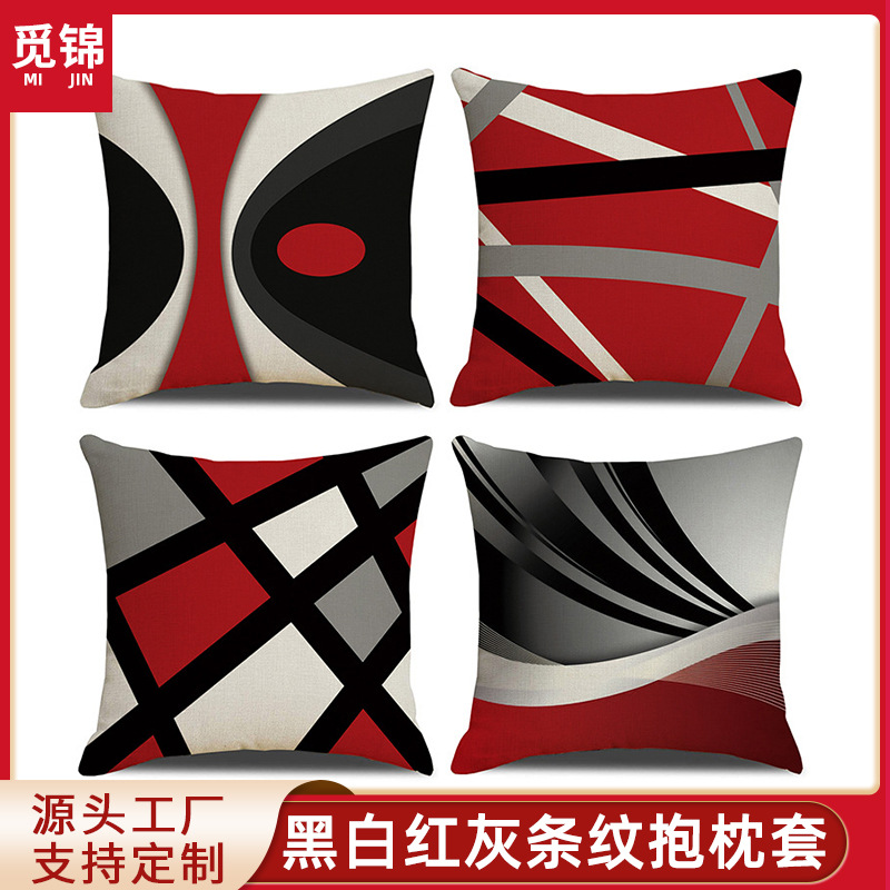 クロスボーダー白黒赤灰色ストライプ枕カバー、ホームデコレーションクッション、ソファカバー、クッション枕カバー卸売、幾何学模様