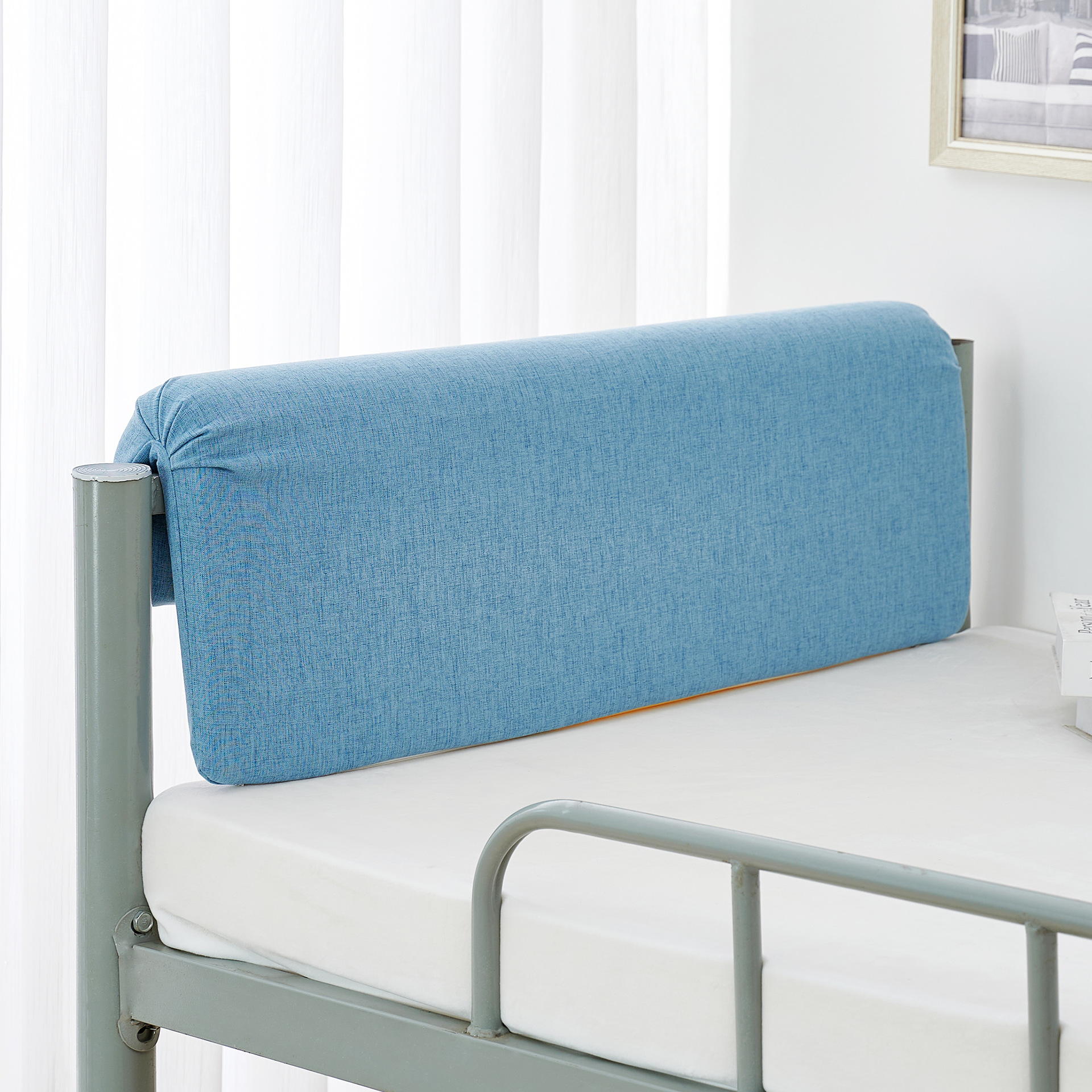 学生寮のベッドの上の寝室のシングルベッドのクッションの上に枕を敷いて腰を保護します。