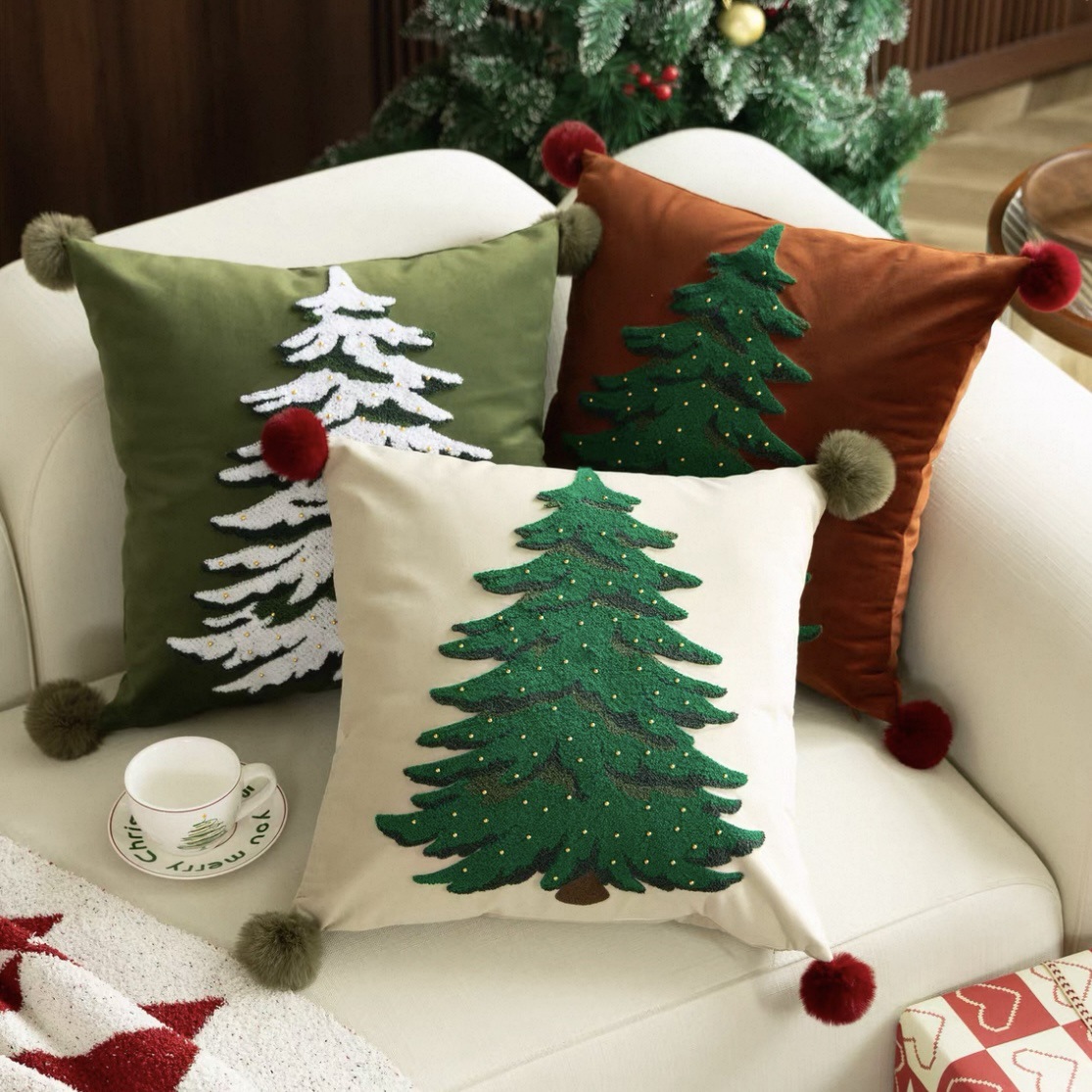 クリスマス枕カバークリスマスツリーインスタイル刺繍アメリカンソファクッションベッドサイドクッション腰枕