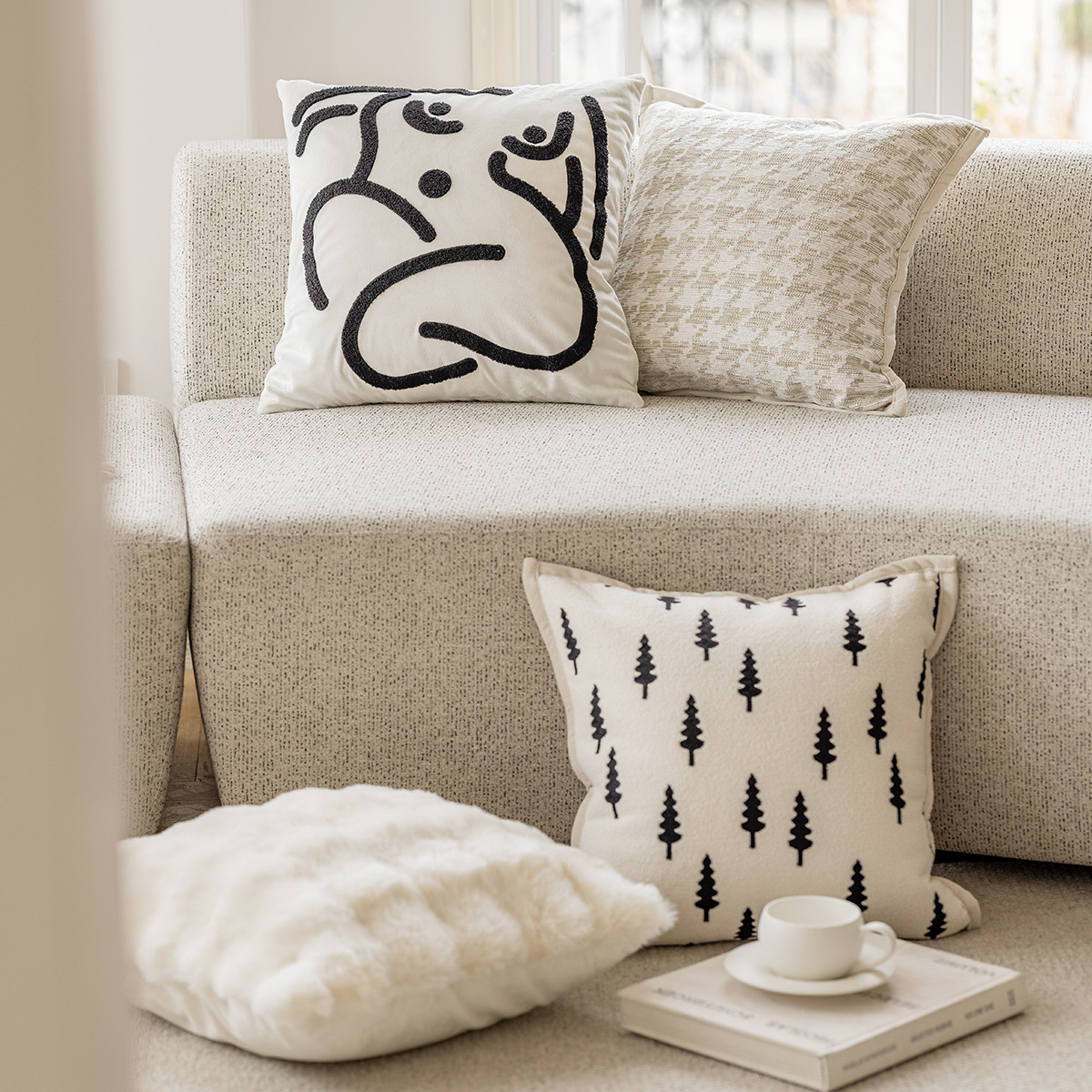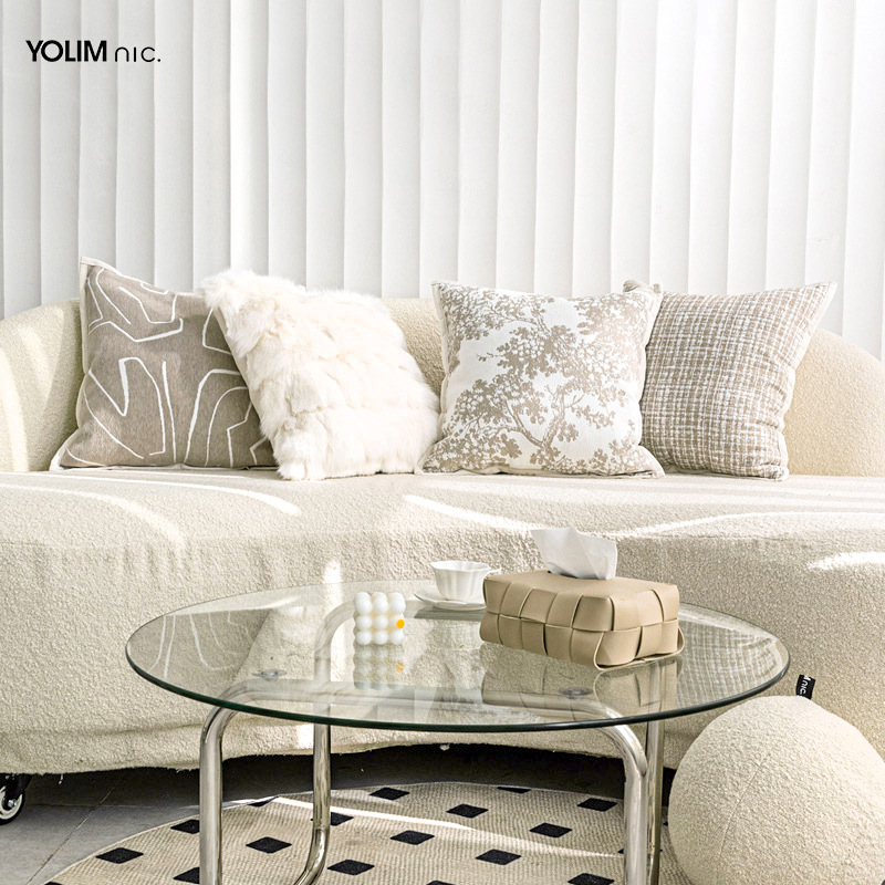 北欧フランス式クリーム風ソファー抱き枕客間寝室ベッド上枕シェニール窓クッションキツネ毛