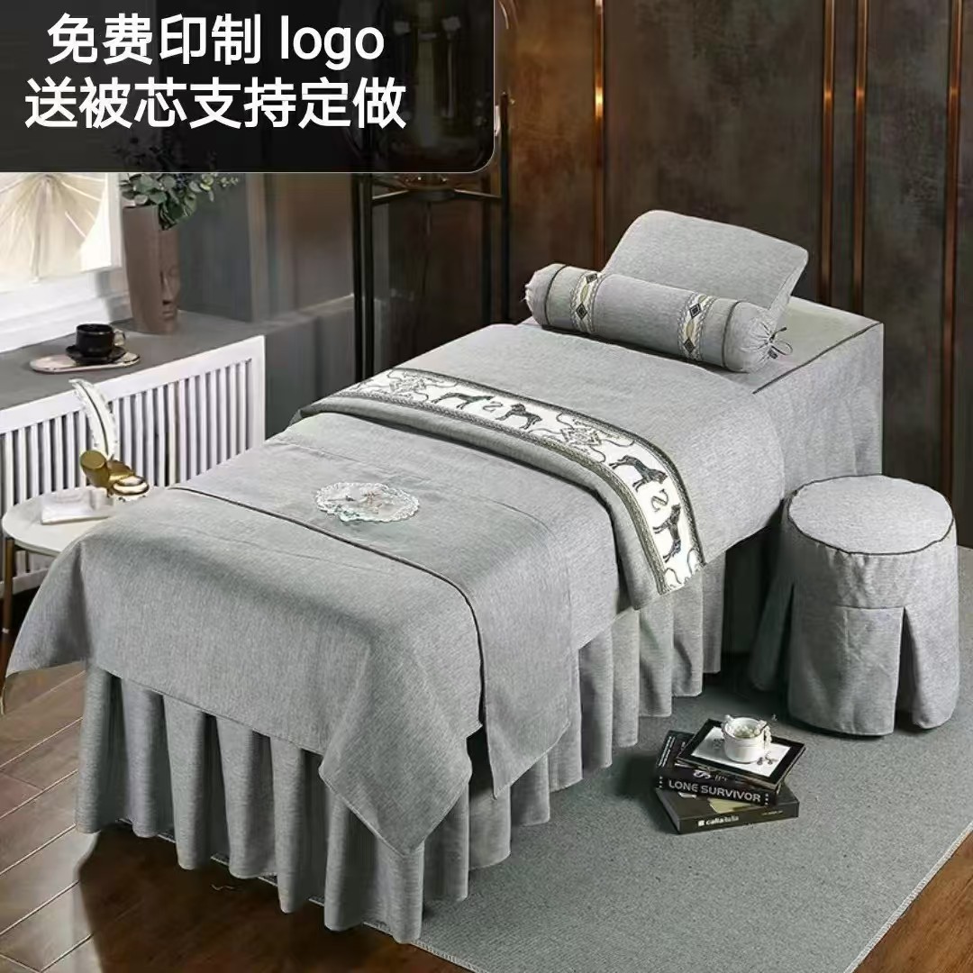 新型綿麻美容ベッドカバー四点セットシンプル四季通用美容院マッサージシャンプー
