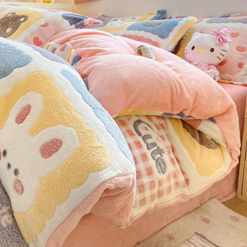 卸売増粘ミルクベルベット布団カバー単品秋冬学生寮プラスベルベットミルクベルベットコーラルベルベット布団カバー帯電防止