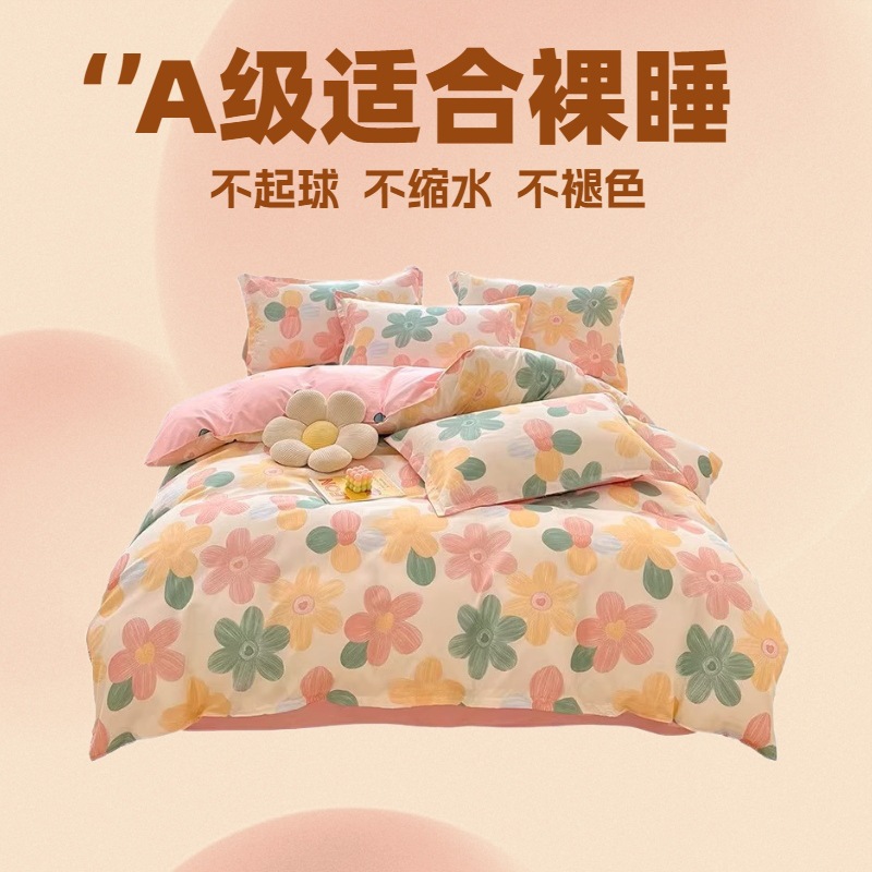 かわいい高颜値肌布団シーツ磨毛布団カバー一枚カバー一人二人学生三点セット裸で寝ることができる