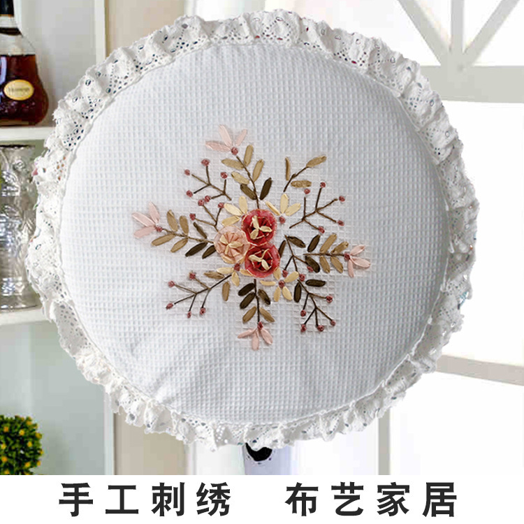 扇風機カバー 布製 刺繍 防塵カバー 田園風 家庭用 全面保護 丸型扇風機 防塵保護カバー 立体刺繍