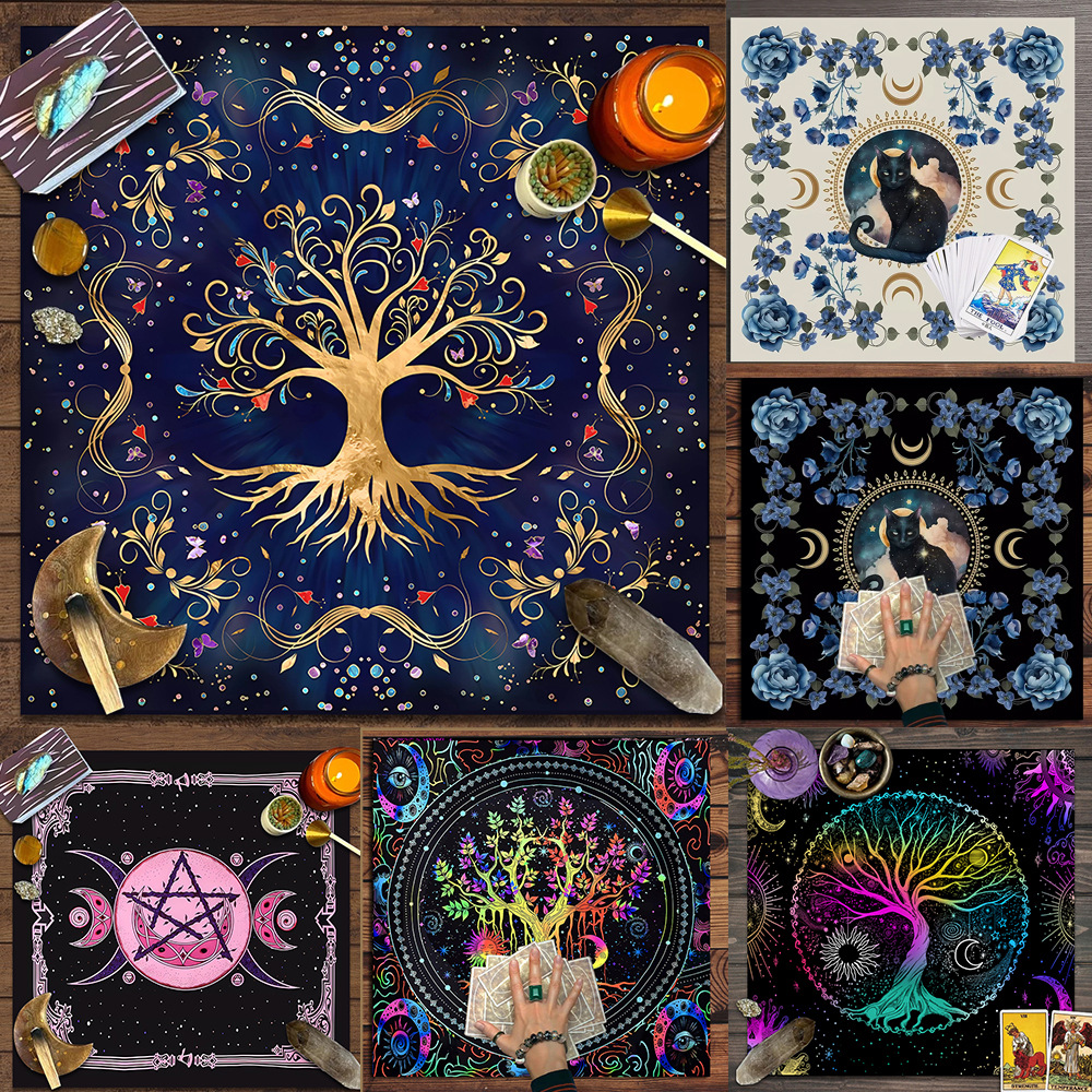 タロットテーブルクロスTarot Tableclothテーブルクロス生命の木猫月相テーブルマット定刻インスタ制