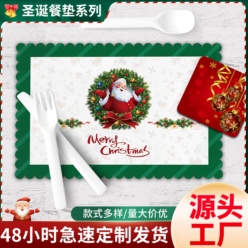 国境を越えた新しいクリスマス老人パーティーの食事マット食卓マット祝日プリント装飾雪だるまテーブルマットテーブルクロス卸売り