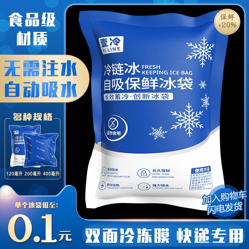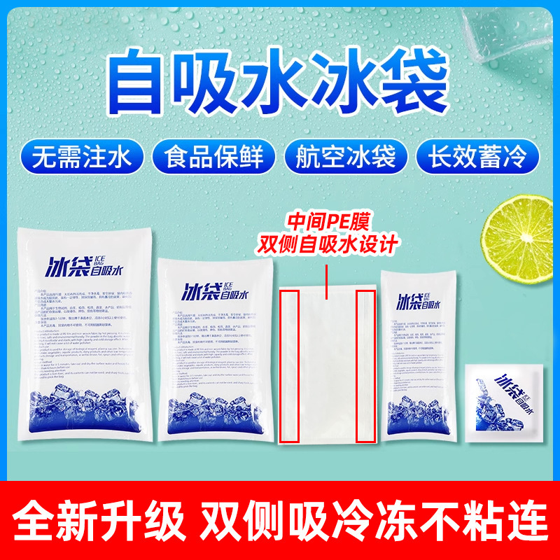 自己吸水性アイスバッグ、両面吸引、再利用可能なシーフード航空エクスプレス食品特別保存使い捨てアイスバッグ