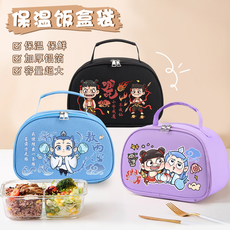 ネザと同じスタイルのポータブルランチボックスバッグ、Ao Bing学生のかわいい断熱ランチボックスバッグ、アルミホイルポータブル大容量ランチバッグ