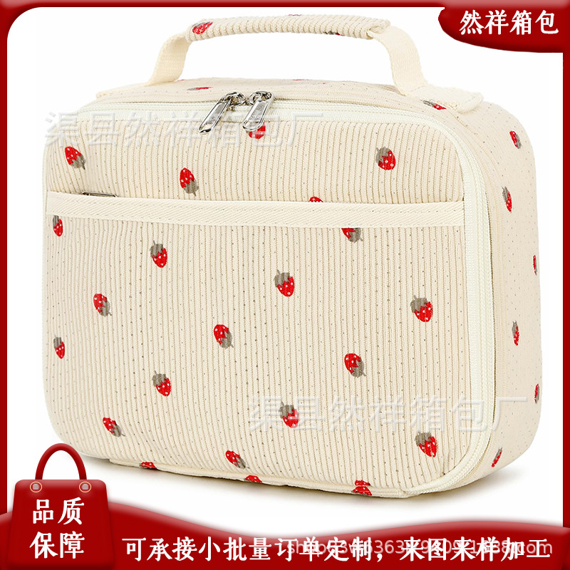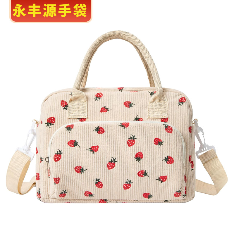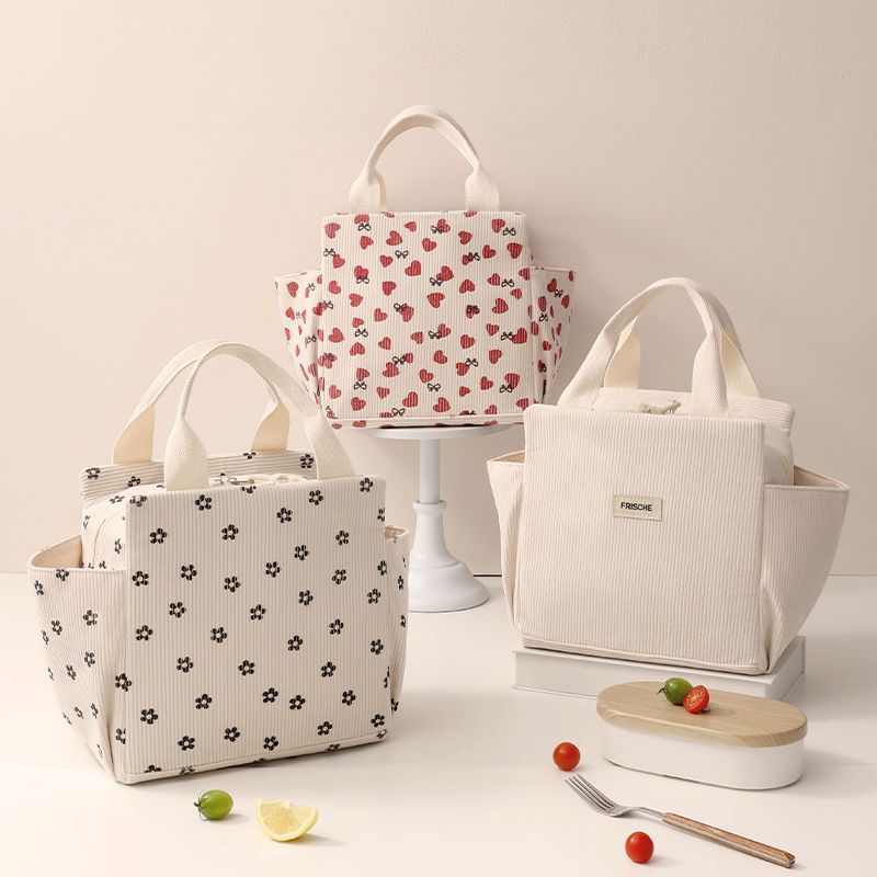 手提げ保温袋ランチバッグ大容量コーデュロイ四角い食事バッグ通勤用保温バッグ付き学生弁当袋