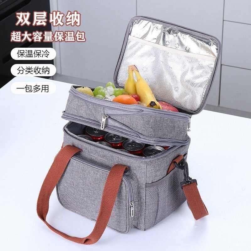 保温ランチバッグ二重保温バッグ大容量屋外ピクニックバッグ携帯シングルショルダーバッグ